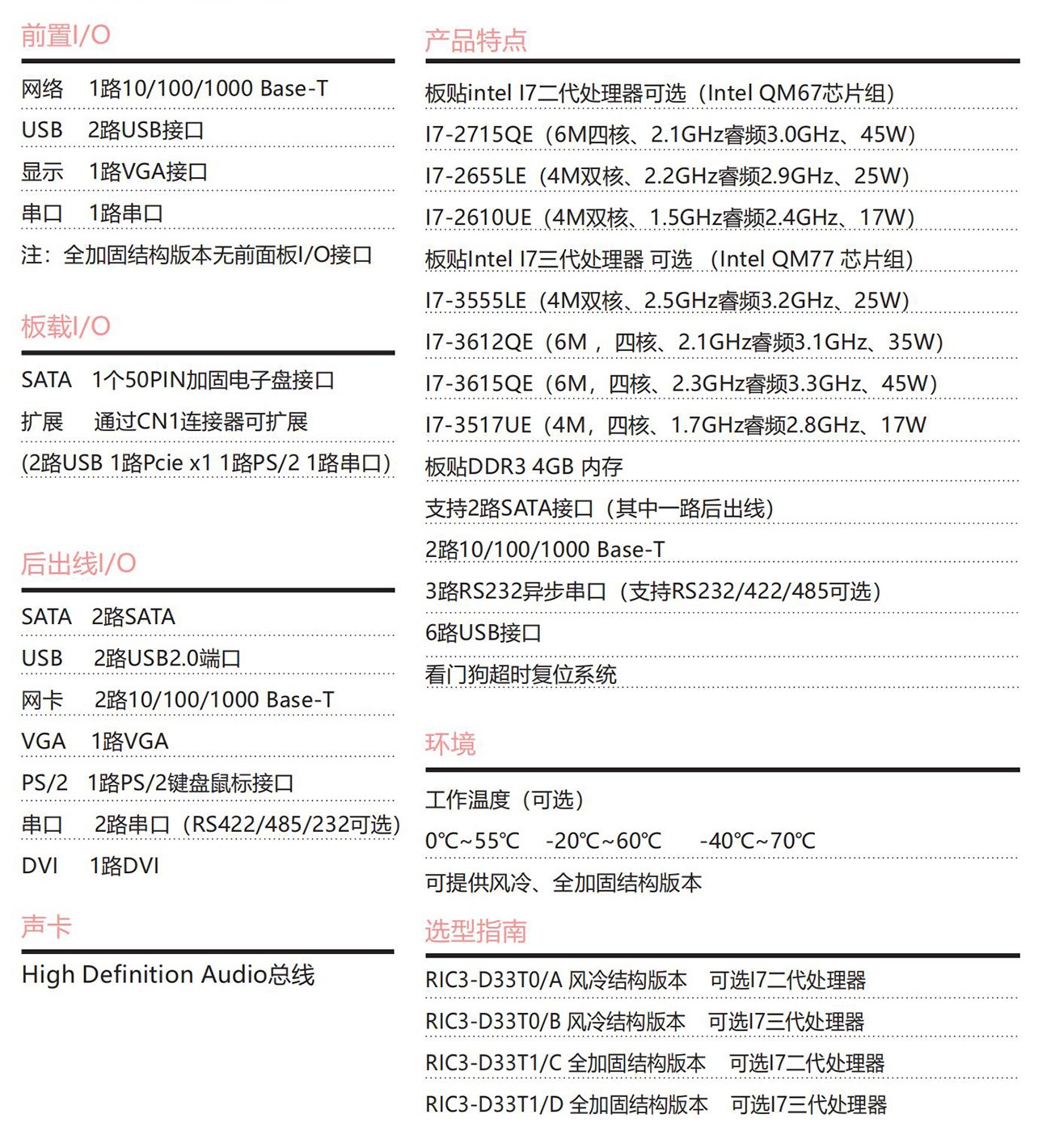 采 用Intel? I7二 代 , 三 代 處 理 器 設(shè) 計 方 案 ,CompactPCI 3U架 構(gòu) , 符 合 PICMG2.0 R3.0標(biāo)準(zhǔn)具備豐富的外圍接口;設(shè)計了高效的散熱系統(tǒng),可顯著提 高處理器的浮點運(yùn)算性能,以太網(wǎng)、PCIe TO PCI擴(kuò)展總線、滿足視頻采集與處 理等應(yīng)用對高速數(shù)據(jù)傳輸?shù)囊蟆閻毫迎h(huán)境使用而設(shè)計,滿足無人機(jī)、裝 甲車、水面艦艇等應(yīng)用需求。