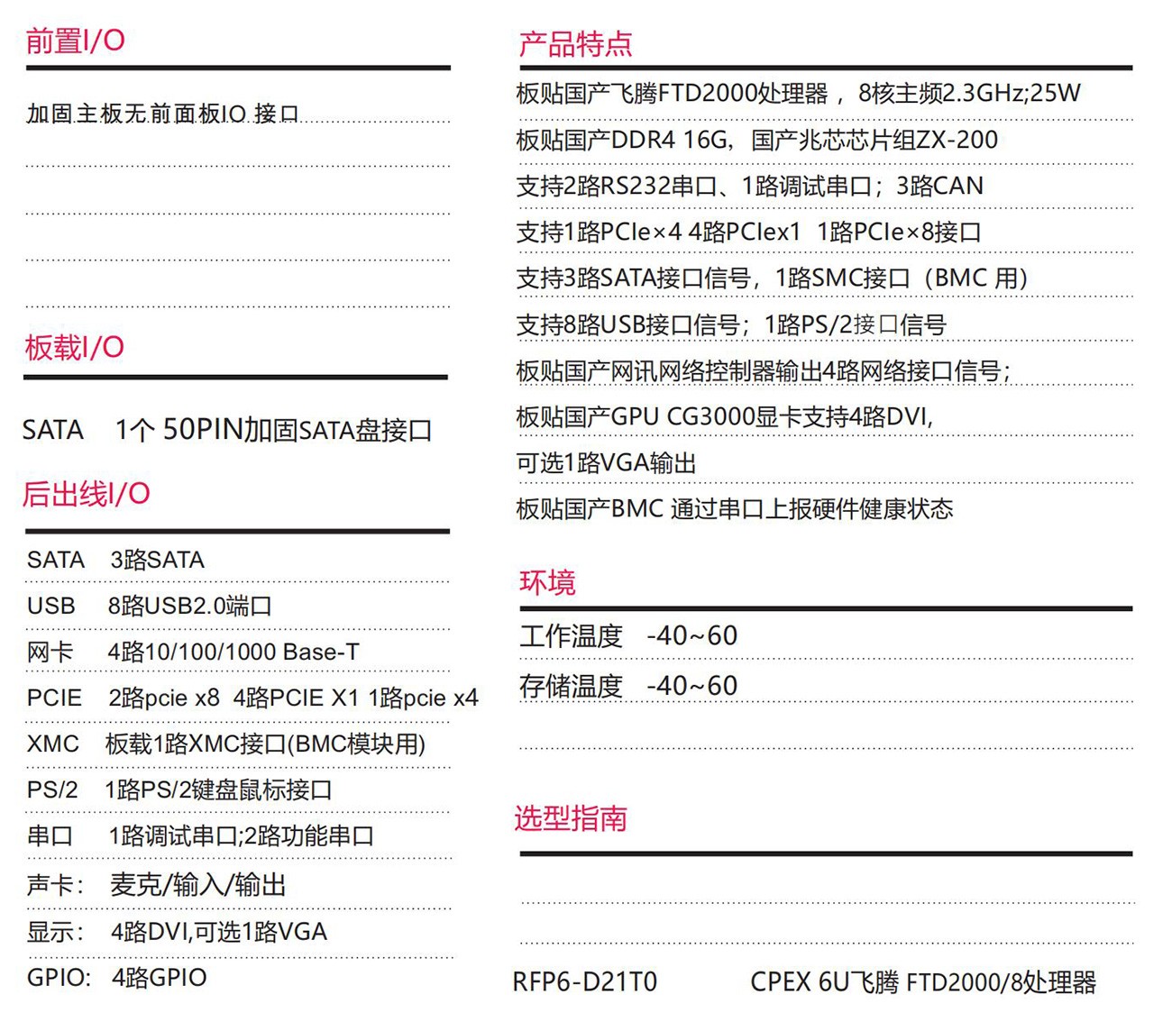 采用國產(chǎn)飛騰處理器+ZX-200芯片組國產(chǎn)化設計, 6U CPEX規(guī)格。具備豐富的外圍接口;設計了高效的散熱系統(tǒng),可顯著提高處理器的浮點運算性能,以太 網(wǎng)、PCIe、支持高帶寬數(shù)據(jù)傳輸,滿足視頻采集與處理、雷達和聲吶等應用對高速數(shù)據(jù)傳輸?shù)囊?。滿足 無人機、裝甲車、水面艦艇等軍工領域。