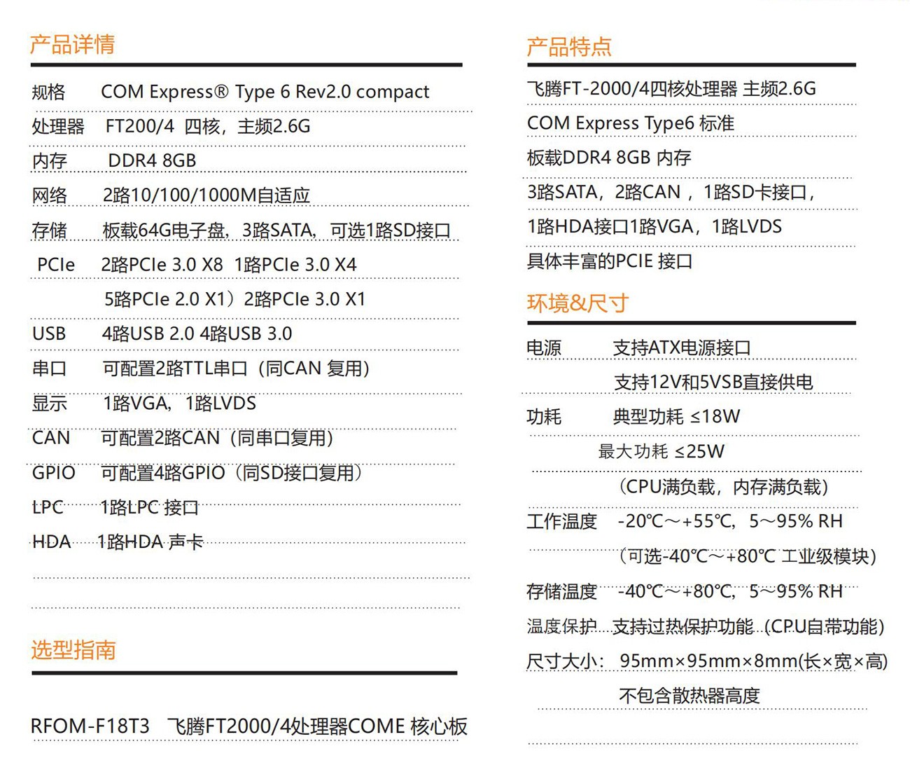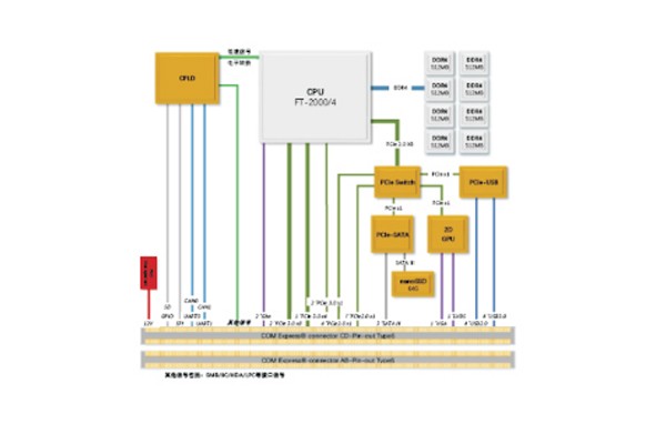 采用FT-2000/4高性能處理器設計 符合COM Express Type6 rev2.0 接口規范設計,板載DDR4 8GB 內存, 64G工業固態電子盤,支持VGA和LVDS雙屏顯示輸出, 是一款國產自主可控集高性能,低功耗,高可靠性于一體的高集成度COME 核心板,可廣泛應用于能源,軌交,國防,科研,通訊等領域。